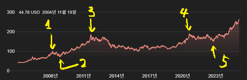 부동산 버블 붕괴의 시작이였죠 이때가 금 최고가였군요