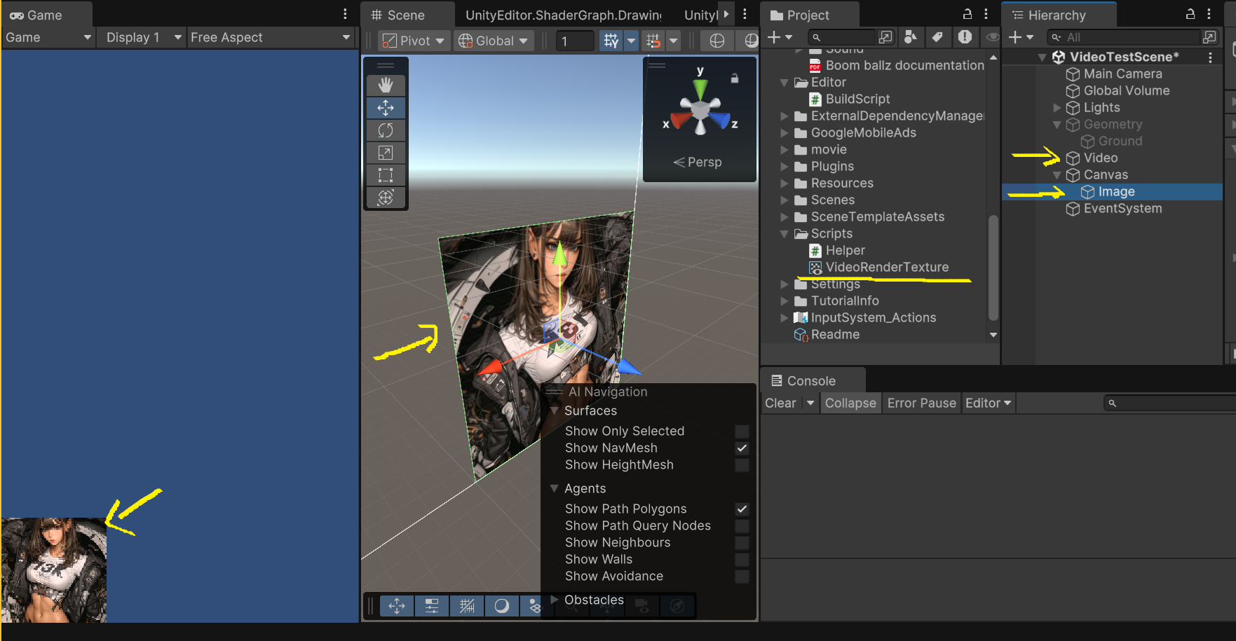 이러면 UI 에 사각 이미지에 영상이 화면에 나오게 됩니다.
