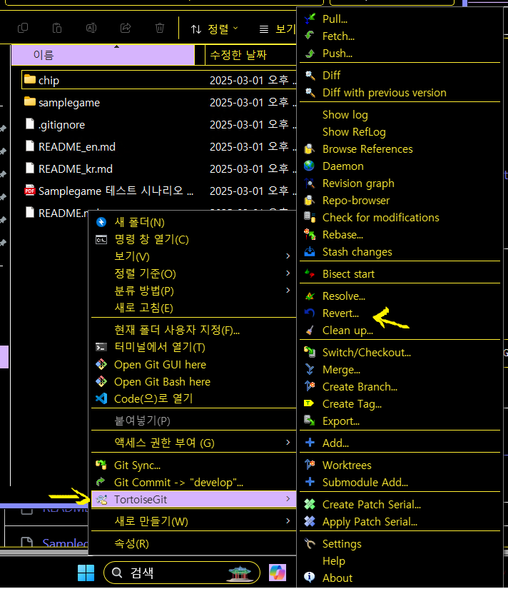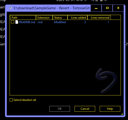 어떤파일을 Revert 되돌리기 할지 선택할 수 있습니다.