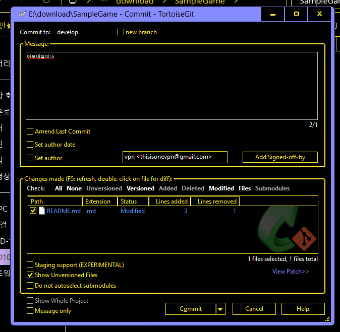 아래쪽엔 내가 고친 파일들이 보입니다. 확인하시구요