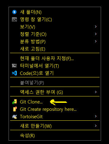 윈도우 탐색기에서 우클릭 하시면 clone 을 할 수 있습니다.