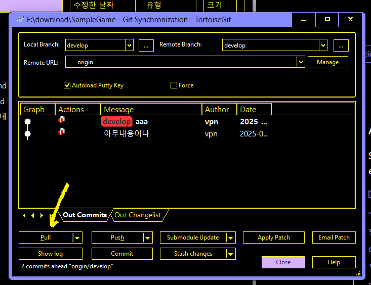 아래에 보시면 Pull 있습니다. 누르시면 받아집니다.