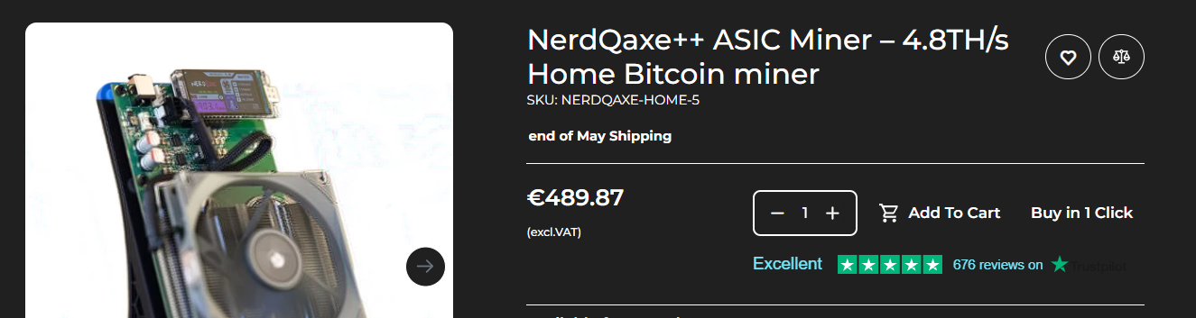 좋은 제품이라고 봐야겠군요.소핑몰 링크: https://mineshop.eu/nerdqaxe-asic-miner-48ths-home-bitcoin-miner