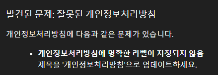 " 개인정보처리방침" 이라는 문구가 표시되어야하고 ....