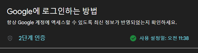 구글 계정 -> 보안 -> 2단계 인증 이걸 사용 설정 해야한다.