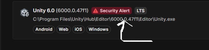 유니티 허브에서는 이런식으로 위험하다는 표시를 해주고 있습니다.