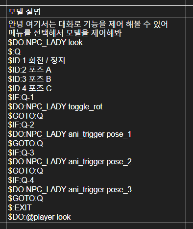 이런식으로 대화창 제어용 언어도 개발했습니다.