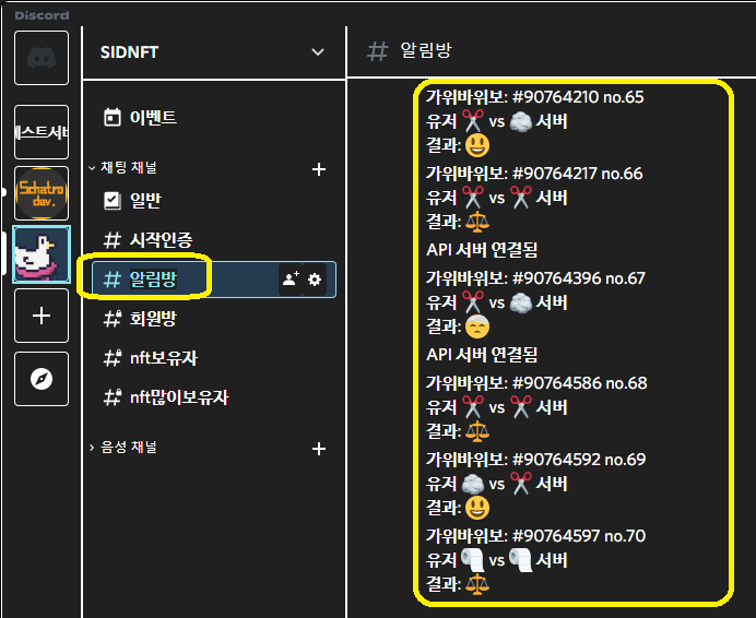참고해주세요디스코드봇과 연동했습니다. 디스코트로와서 구경해보세요