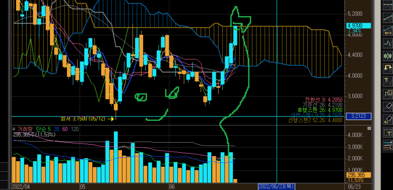 아쉽게도 5.1 불에 모두 매도했고 5.8 까지 가버렸군요