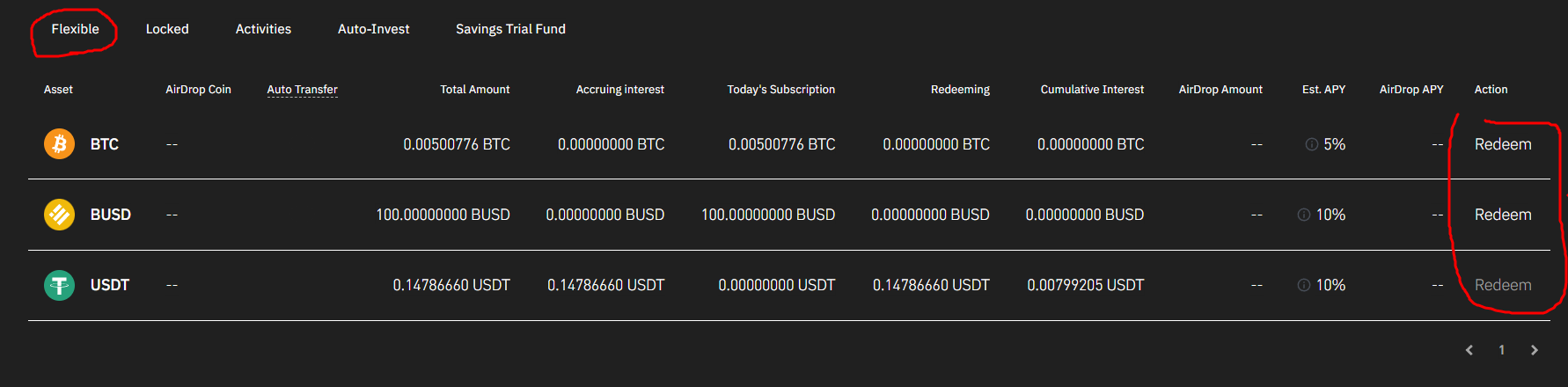 화면 제일 오른쪽에가시면 코인마다 Redeem 버튼이 있습니다. 빼고 싶은 코인에껄 누르세요