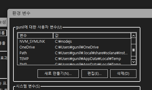 이런식으로 환경 변수 설정 메뉴가 있습니다.