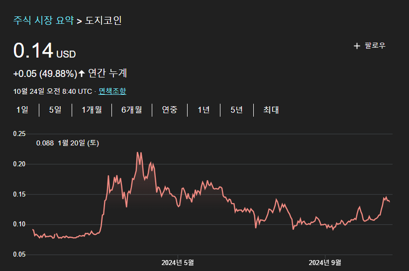 트럼프 당선이 거의 확정된가운데 도지코인도 상승하고 있습니다.