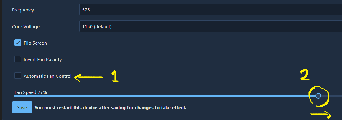 Fan % 를 수동으로 하고 77 로 올려봤습니다.