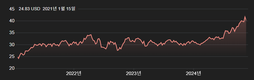 5년치 차트입니다. 23년을 편안하게 보냈군요