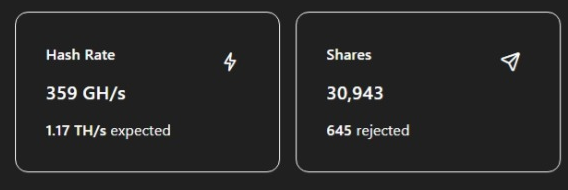 solo 채굴은 shares 가 없나봅니다. bains pool 에서 채굴하니까 이 수치가 나오네요