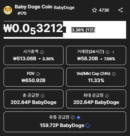 베이비도지 코인마켓캡 링크: https://coinmarketcap.com/ko/currencies/baby-doge-coin/