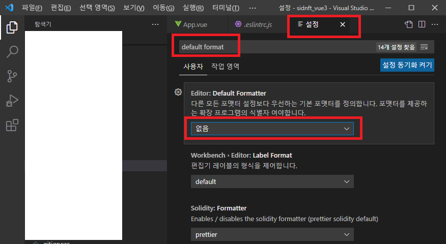 나는 설치 순서에 문제가 있는건지 매번 이문제가 발생하던데 다른 유튜버 영상에서는 한방에 잘되는데... default formatter 라는걸 설정해줘야합니다. 설정창 여는방법은 [파일] -> [기본 설정] -> [설정] 메뉴를 이용하시고 default format 을 검색창에 입력하시면 [없음] 이라는 부분이 보일 것입니다. 여길 Prettier ~~~~ 로 설정하시면 정상 동자하게됩니다. 출처ㅣ https://www.youtube.com/watch?v=dKjsZVlyQIE